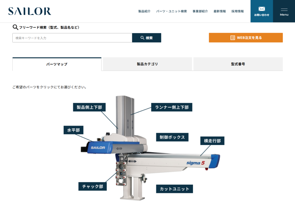3. 3つの検索方法で、欲しい部品がすぐに見つかります 膨大な部品の中から目的の商品を迷わず見つけられるよう、以下の3つの検索方法をご用意しました。用途に合わせて使い分けていただけます。部品検索はこちら(https://robotics.sailor.co.jp/parts-catalog)