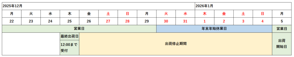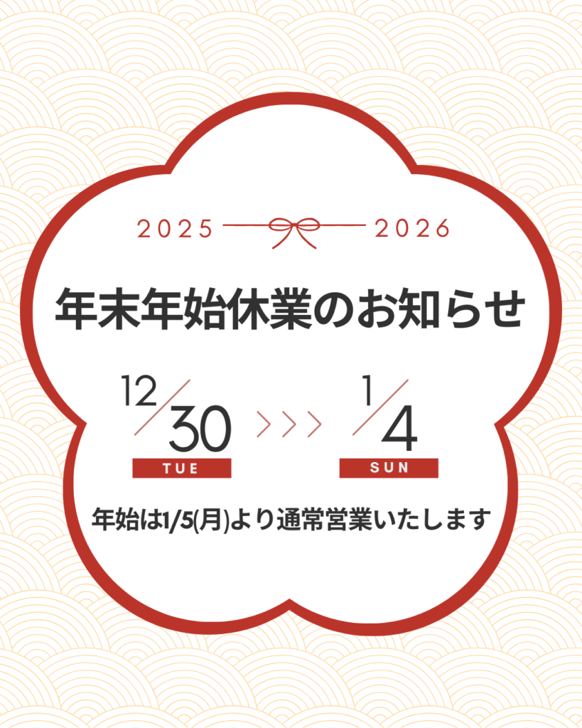 【休業期間】2025年12月30日(火)~2026年1月4日(日)